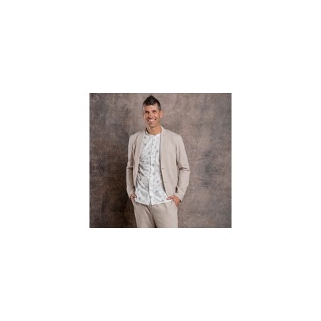 Americana de hombre cuello solapa, con 2 botones, sin abertura en espalda. Dos bolsillos de plastrón y uno en pecho. Fabricada con algodón orgánico.