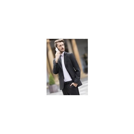 Americana hombre cuello solapa y dos botones. Dos bolsillos de cartera y uno de pecho. Cuatro botones en la manga. Espalda con dos aberturas.