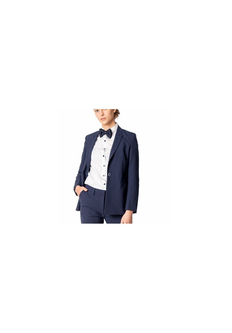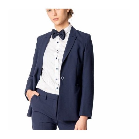Americana de mujer cuello solapa con 1 botón y 1 abertura en espalda. Dos bolsillos de tapeta estrecha. Bajo recto. Forro a tono.