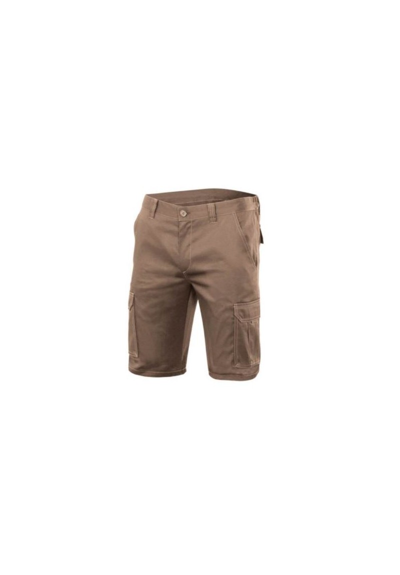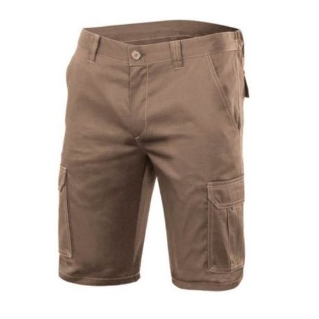 Bermuda unisex de 240 g/m² en mezcla de algodón, poliéster y EMET (fibra elástica). Cintura elástica y cierre frontal con cremallera y botón. Doble costura de seguridad. Seis bolsillos, dos franceses y cuatro con tapeta y velcro.