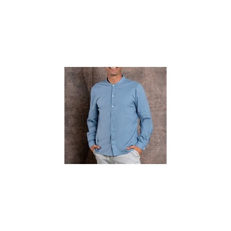 Camisa unisex con cuello mao y recogemangas. Cierre con botones, los 3 primeros vistos y el resto con botonadura oculta. Fabricada con algodón orgánico.