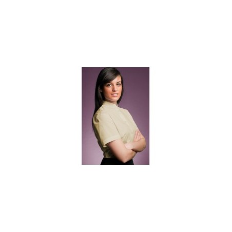 Camisa mujer manga corta con cuello mao y pinzas en delantero y espalda para entallar