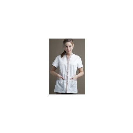 Casaca mujer manga corta. Dos bolsillos. Combinada a rayas. Su tejido es suave pero muy resistente. Se convertirá en tu prenda favorita si necesitas bolsos amplios con fuelle para poder guardar todo lo que necesitas para el desarrollo de tu trabajo. Si bien es una prenda básica de limpieza, su diseño femenino hará que te sientas guapa sea cual sea el oficio que realices.