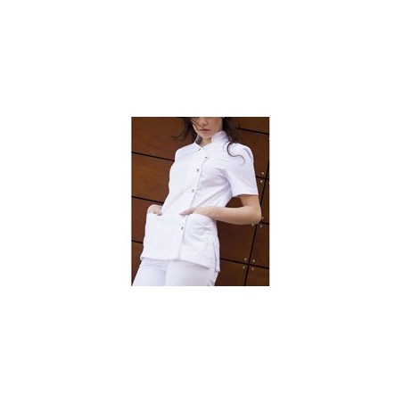 Casaca mujer manga corta con cuello mao y 2 bolsillos. Cierre asimétrico con automáticos. Fabricada en tejido de acabo suave. Todo un clásico entre nuestras casacas. Si buscas comodidad, esta prenda es para ti. Las aberturas laterales te facilitarán el movimiento mientras que el cuello mao y el cierre asimétrico proporcionan elegancia. Aúna sencillez, relajación y sofisticación. Una muy buena elección si buscas transmitir un estilo chic con tu uniforme.
