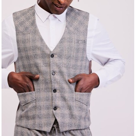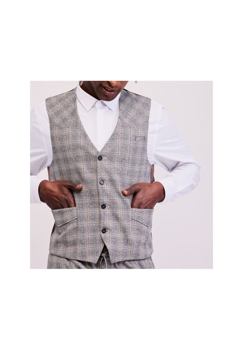 Chaleco slim fit. Cuello pico y manga sisa. Bolsillos en cadera de parche y uno de vivo porta bolígrafo en el pecho . Ajuste con goma ojalada en la cintura por la espalda. Cierre frontal de botonadura.
