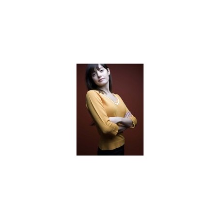 Jersey mujer con escote en pico y manga 3/4. Ribete contrastado en blanco en escote