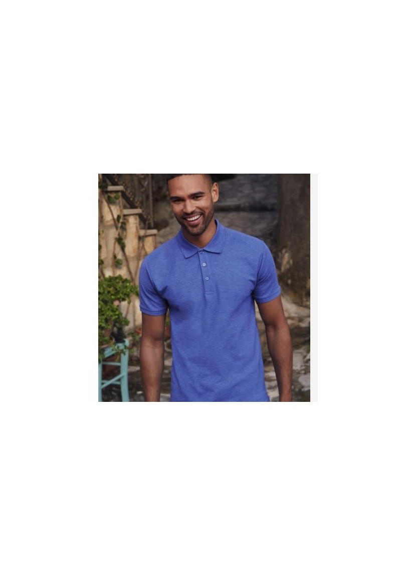 Polo de hombre de 180 g/m² con el cuello de tricotosa y una tapeta frontal de tres botones. Sin bolsillo. Con la manga corta terminada en un puño con canalé. Apto para lavado en lavadora hasta 60º.